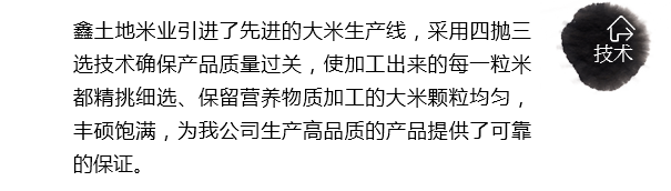 鐵等礦物質(zhì),無(wú)污染的環(huán)境,豐產(chǎn)的水稻資源,使鑫土地米業(yè)不斷發(fā)展壯大,成為綏化地區(qū)新崛起的一支精制大米生產(chǎn)的生力軍。